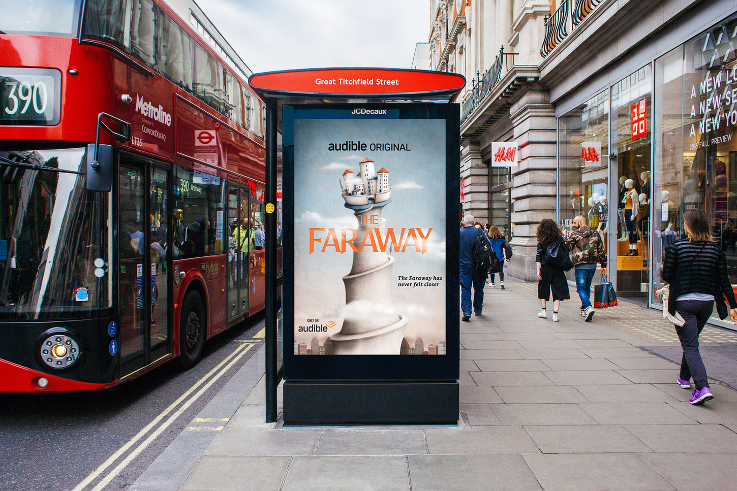 Based on a fictional fantasy/adventure audiobook, The Faraway identity carries the feeling of being in a whimsical remote place. Encouraging an Adult target audience (18-34) to escape reality.