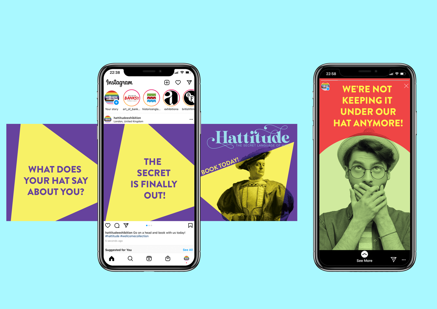 Hattitude is a fictional exhibition hosted by the Wellcome Collection in London, UK. Spanning Tudor, Victorian and modern headwear, The Hattitude exhibition explores the role of headpieces through history to modern times. As hats defined a person’s role within society, identity is expressed through portrayals of individuals who embody these roles, shown with the prominence of a magazine front cover to reflect their social perception.